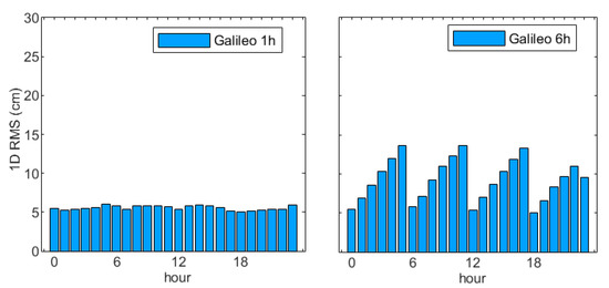 Accuracy of Galileo ultra-rapid predicted orbit updated per 6 h and Galileo ultra-rapid predicted orbit updated per 1 h.
