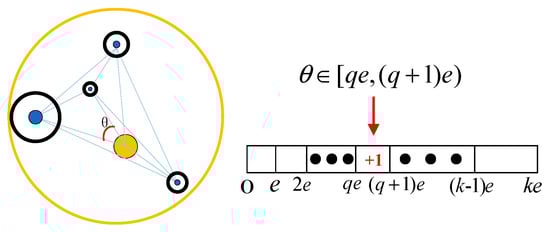 - Using the “constellation” composed of the crater to be matched and m surrounding craters, calculate the angle between the craters, according to ; this process is discretization, and discretization makes the feature more robust.