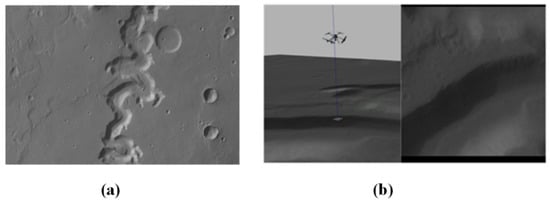 Under the Robotic Operating System (ROS), the abovementioned Mars area was input to the gazebo [28] physical simulation platform, and the PX4 [29] flight control system equipped with a camera was used to obtain the flight attitude and camera data, as shown in Figure 8.