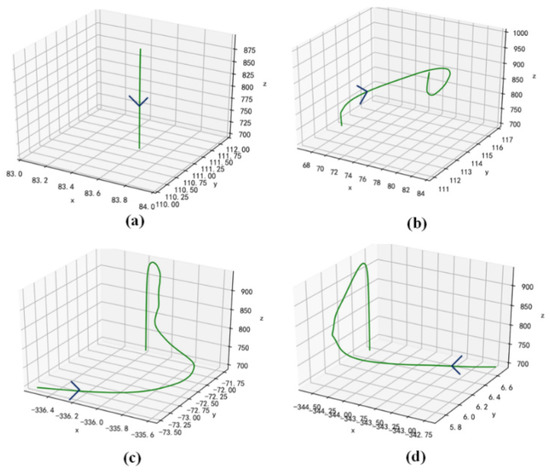 Using gazebo, the ascent, descent, and level flight of the spacecraft were simulated. The sequence rate is 10 frames per second (fps). The experiment used four sequences, i.e., Seq1–4. The shooting area of different sequences is different, as is the average crater density. Figure 9 shows their ground-truth trajectories. The image resolution used in the experiment was 1024 × 1024. The flight altitude range of simulations Seq1–4 was between 600 and 1000 m.