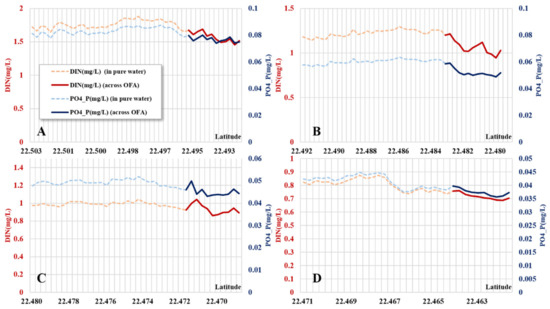 Nutrient concentrations at four perpendicular lines. (A–D) represent the results of the same four perpendiculars in Figure 18.