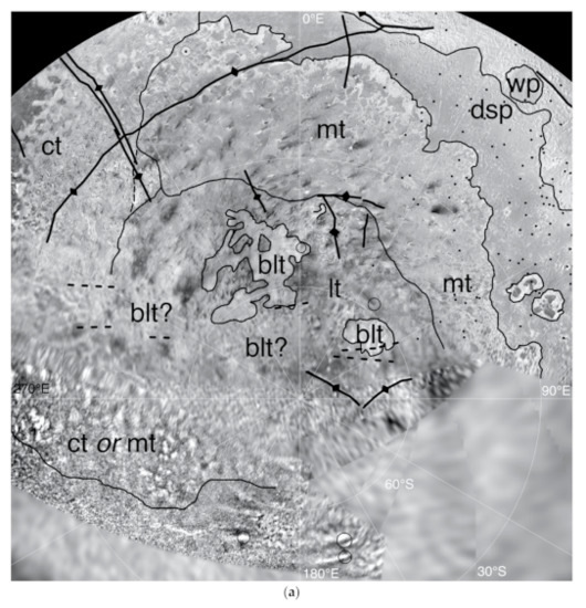 - Martin, E.; Patthoff, A. Mapping Neptune’s Moon Triton. Planetary Geologic Mappers 2020. (LPI Contrib. No. 2357). 2020. Available online: https://www.hou.usra.edu/meetings/pgm2020/pdf/7024.pdf (accessed on 15 May 2021).