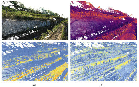 - Brodu, N.; Lague, D. 3D terrestrial LiDAR data classification of complex natural scenes using a multi-scale dimensionality criterion: Applications in geomorphology. ISPRS J. Photogramm. Remote. Sens. 2012, 68, 121–134. [Google Scholar] [CrossRef] [Green Version]