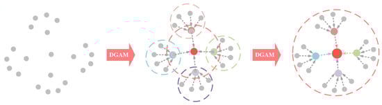 To further illustrate the capability of our designed DGAM, we visualize its process of local feature extraction. In Figure 7, colored points represent the different point features and the dotted circles represent the receptive field of each point in the local region. As seen from Figure 7, the DGAM is able to significantly increase the receptive field of each input point for capturing the wider range of neighboring information.