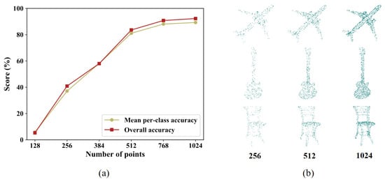 In addition, we further verify the robustness of our classification sub-network by changing the number of input points during testing. Our network was trained on 1024 points with the number of neighbors, k, at 20. After model training, we used the trained network model to predict test samples with random input dropout.