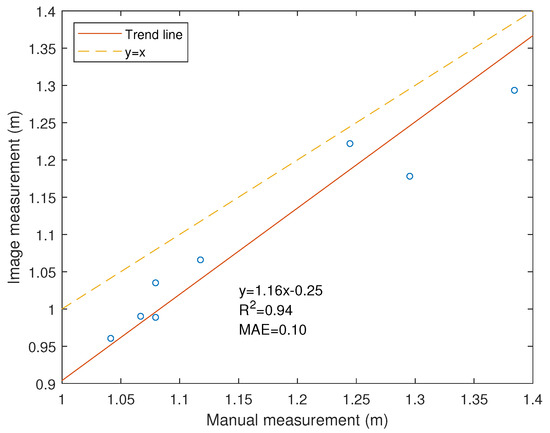 Canopy height values derived from RGB images were highly correlated with manual measurements. The MAE of maximum canopy height derived from images was m and the majority of UAV-based measurements were lower than manual measurements. This is consistent with other studies in which the error associated with canopy height estimates based on photogrammetric methods is within the range of m to m (Figure 19) [15,16,20]. Errors linked to canopy height estimates largely depend on the accuracy of the DSM, which is affected by the spatial resolution of images. Incorrect detection of the ground plane can also result in large errors when generating the plot height model and can usually occur under close canopy and little ground exposure. In this case, the bare ground model should be used to define the ground plane. Other environmental factors, such as plant movement because of wind, also contribute to increased error.