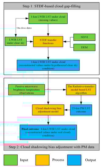 Flowchart of the proposed cloud gap-filling appraoch proposed for MODIS LWIR LST.