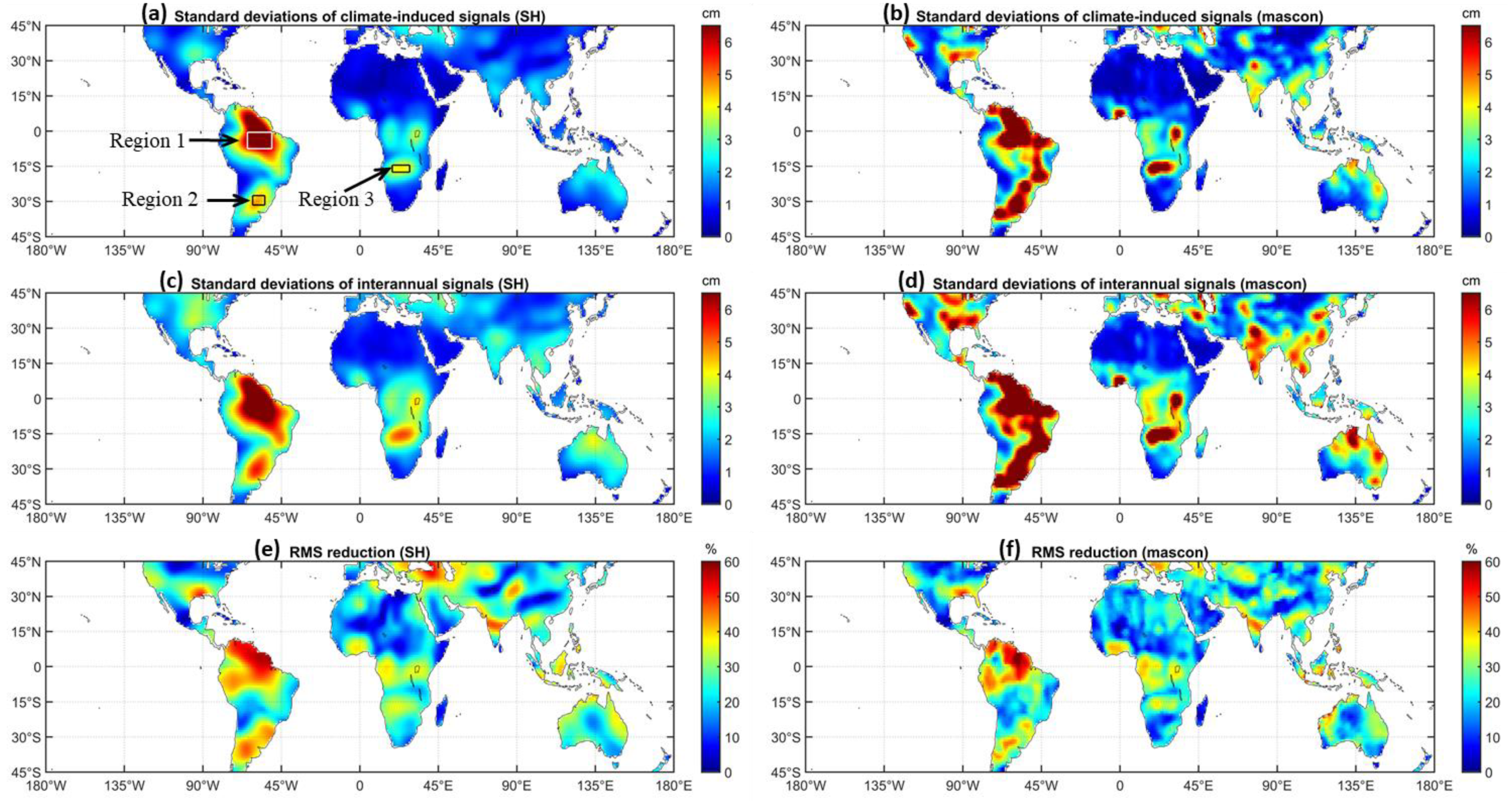 - Tang, J.; Cheng, H.; Liu, L. Assessing the recent droughts in Southwestern China using satellite gravimetry. Water Resour. Res. 2014, 50, 3030–3038. [Google Scholar] [CrossRef]
