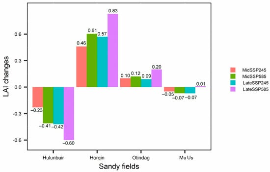 3.3.2. Future LAI Changes in Sandy Fields