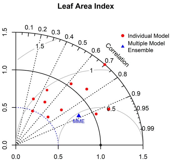 Taylor diagram for the Leaf Area Index derived from CMIP6 ESMs.