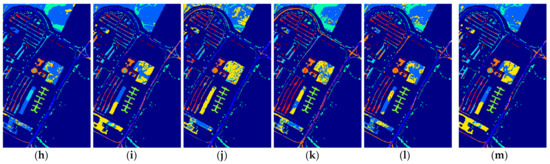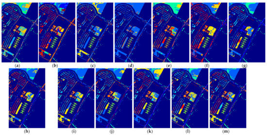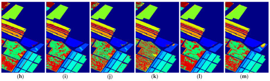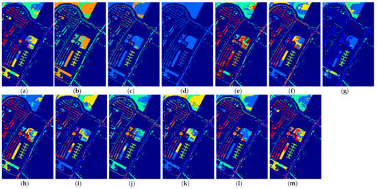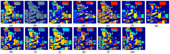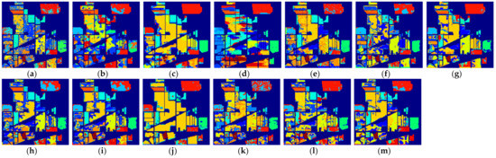 Figure 15, where (a)–(m) represent the results from different classification methods. From these listed results, we obtained the following conclusions.
