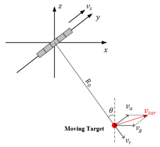 The instantaneous slant range expression of the static target is consistent with that in traditional SAR after reconstruction [11]. For a moving target, however, the equivalent single-channel echo is written as: