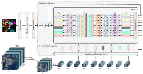 Finally, is fed into the spectral–spatial mixing and finish the HSI classification task. The proposed Multiscale-MLP could obtain abundant spectral–spatial information with multiple patches with different sizes.