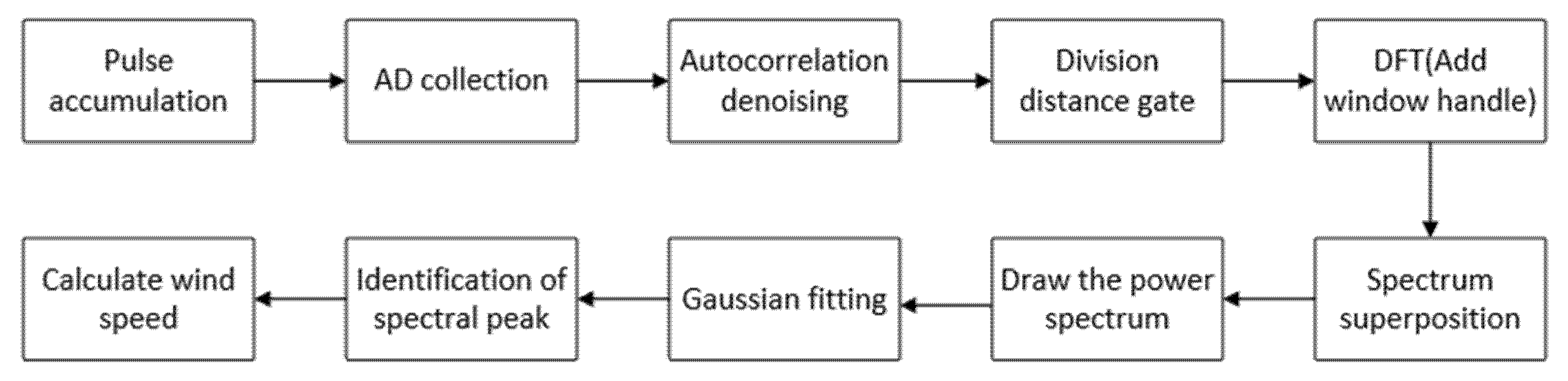 - Wang, C.; Xia, H.Y.; Liu, Y.P.; Lin, S.F.; Dou, X.K. Spatial resolution enhancement of coherent Doppler wind lidar using joint time-frequency analysis. Opt. Commun. 2018, 424, 48–53. [Google Scholar] [CrossRef]