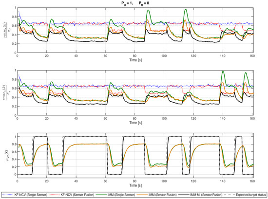 Finally, the results of the IMM-MI sensor fusion scheme are reported in Figure 14e. The proposed strategy provides a further performance improvement, which is apparent: