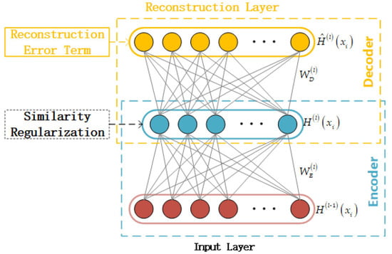 Illustration of the lth AE training in stage 1. The AP-SAE can be optimized layer-wisely by minimizing the reconstruction error of AE with similarity regularization.