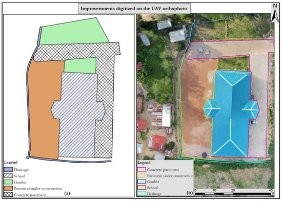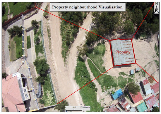 Therefore, among these data sources, UAVs definitely outperform the others. UAV images seem suitable for determining the physical and locational characteristics of the property and its improvements. Based on the orientation of the camera (inclined or oblique) during image acquisition, information on the technical condition of the property, such as facades of the buildings and construction materials, can be obtained. The visualization of such information enables valuers to remotely evaluate the physical obsolescence of the property with high precision. Apart from information about the taxable property, the quantitative data such as parcel area, built-up area, perimeter, and distance to public facilities can be determined from the generated orthophoto (Table 5 and Figure 8).