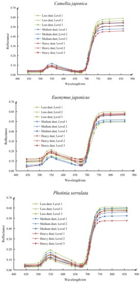 - Lin, W.; Li, Y.; Du, S.; Zheng, Y.; Gao, J.; Sun, T. Effect of dust deposition on spectrum-based estimation of leaf water content in urban plant. Ecol. Indic. 2019, 104, 41–47. [Google Scholar] [CrossRef]