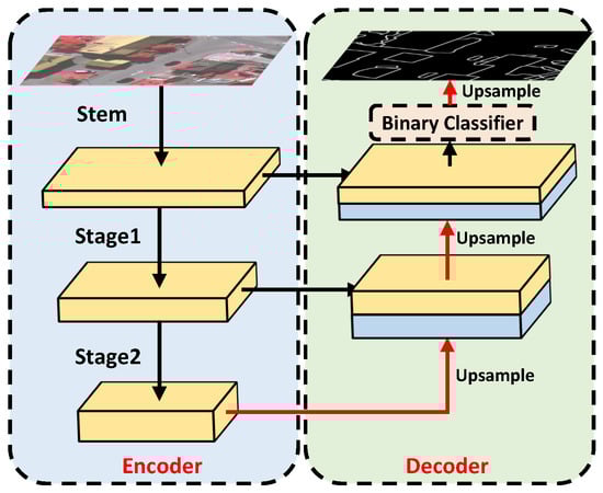 The final features are fed to a binary classifier to obtain edge and non-edge predictions. In particular, the edge extraction network is pre-trained and fixed before training the Efficient transformer. In the encoder part, every stem or stage operates downsampling to obtain feature representations; therefore, the features in the last stage are a resolution of the input. As high resolution features are beneficial to obtain edge details, a input resolution is a balance of edge information and semantic information. Through the CNN-based edge extractor, the prediction in the edge obtains further improvement.