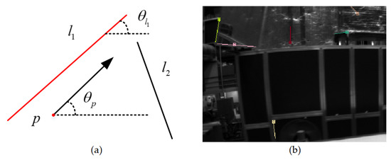 where denotes the projection matrix of a given line, and represent the intrinsic parameters of the calibrated camera. It should be noted that when a line feature is projected onto a normalized image plane, is an identity matrix.
