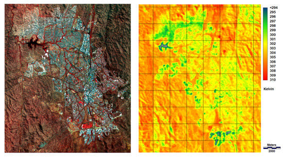 Since the launch of Landsat-5-TM in 1984, Landsat-7-ETM in 1999, Landsat-8 in 2013, and the Advanced Spaceborne Thermal Emission and Reflection Radiometer (ASTER) in 1999, a new generation of thermal IR satellite data have become available, offering an unforeseeable spatial resolution in the 60 to 120 m range, which enables the investigation of inner-urban differences in land surface temperatures (LST) with high accuracy or statistical analysis, as well as thermal unmixing of LST data according to land use variations []. Important overview articles have since been written by Voogt and Oke [] and Rasul et al. []. Since Stewart and Oke [] introduced the concept of local climate zones (LCZ) for urban climate studies, the integration of thermal infrared data for urban studies has developed.