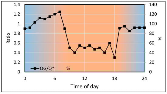 - An important point to consider is that, at night, the QG/Q*-ratio can reach values greater than 1.0 (>100 %), which means that the nocturnal storage heat flux QG does not only completely compensate for the negative net radiation at night; rather, it also helps to maintain a sensible heat flux—even at night— which is directed upwards towards the urban atmosphere by up to 20 %, which is equivalent to 10–20 Wm−2 [].
