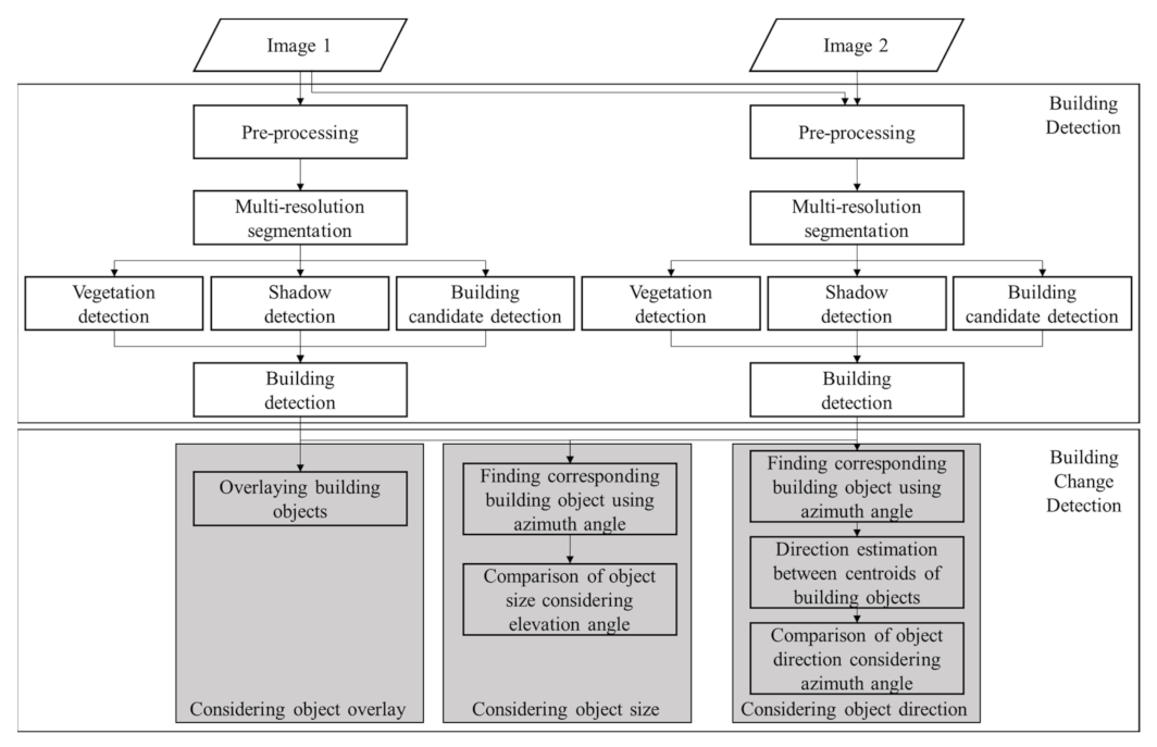 Jung, S.; Lee, W.H.; Han, Y. Change Detection of Building Objects in High-Resolution Single-Sensor and Multi-Sensor Imagery Considering the Sun and Sensor’s Elevation and Azimuth Angles. Remote Sens. 2021, 13, 3660. https://doi.org/10.3390/rs13183660