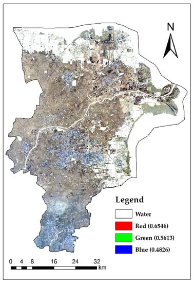 - Phinn, S.; Stanford, M.; Scarth, P.; Murray, A.T.; Shyy, P.T. Monitoring the composition of urban environments based on the vegetation-impervious surface-soil (VIS) model by subpixel analysis techniques. Int. J. Remote Sens. 2002, 23, 4131–4153. [Google Scholar] [CrossRef]