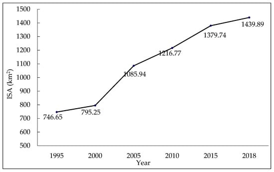 - Research shows that the gradual increasing trend can be captured on the expansion of ISA from 1995 to 2018. The scope of ISA was the smallest in 1995, but it was large in 2015 and 2018. Despite of the central region always shown as the high ISA density, it still keeps increasing annually and radiating the surrounding region, especially in the southward which has formed into a new large–scale and high intensity of ISA in 2015– 2018. Though the ISA patches scattered in the west region or along the northern and eastern part of the ocean coastline are still small, the expansion trend of ISA can be detected. The EII of ISA measuring the situation of its expansion changes from the lowest value 0.12% between 1995 and 2000 up to the highest 0.73% between 2000 and 2005. This shows that urban development was relatively slow from 1995 to 2000 and relatively fast from 2000 to 2005.