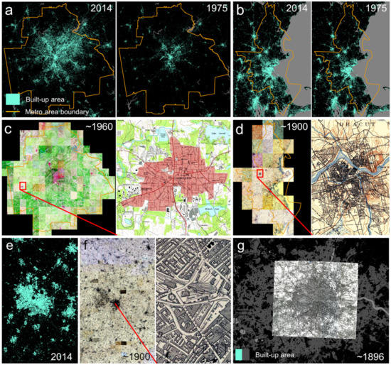 - Uhl, J.H.; Leyk, S. Towards a novel backdating strategy for creating built-up land time series data using contemporary spatial constraints. Remote Sens. Environ. 2019, 238, 111197. [Google Scholar] [CrossRef]