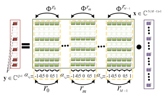 where represents the frequency-hopping dictionary matrix. Then, (8) can be further rewritten as: