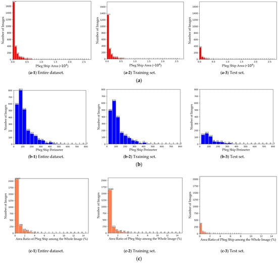 Figure A2 in Appendix A shows the ship polygon segmentation labels in the test set of PSeg-SSDD. The inshore samples are marked in magenta. In Figure 3, different ships are covered with different colors for clarity. The outline of the ship polygon is marked in green. From Figure A2, obviously, it is the most satisfactory to adopt polygon segmentation labels to detect ships. This task is at the pixel level, similar to traditional CFAR detections.