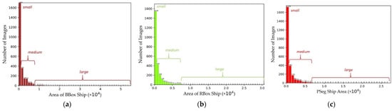 The size of the sample image in the dataset has a significant impact on the final detection performance. Generally, a deep network often needs a fixed image input size to maintain the unity of feature dimensions, e.g., SSD-300’s input dimension is 300 × 300, SSD-512 is 512 × 512 [20], and YOLO is 416 × 416 or other multiples of 32 [19]. When the images in the dataset are not uniform, one usually needs to use some image interpolation methods to resize the original image. Therefore, the dimension of the resized scale is rather important. This size should preferably be determined according to the image size distribution of the dataset. For example, in the computer vision community, the default input size of the COCO dataset is 1333 × 800, which is an empirical optimal value adopted by a wide range of scholars. If this resized scale is too small, the information of many ships will be lost after a series of convolutions, resulting in their missed detections. If this resized scale is too large, the parameters of the network will increase rapidly, resulting in slow convergence speed, longer training time, and sacrificing the computational cost.