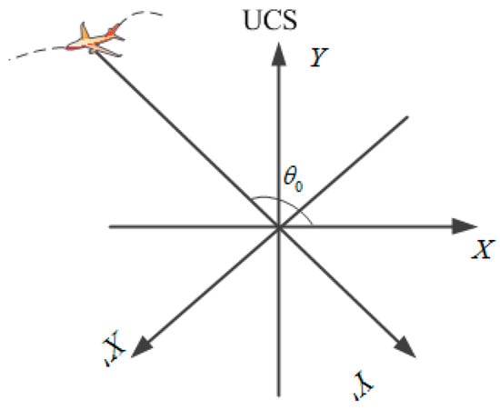 As mentioned above, the imaging result of LOSPI is rotated to the direction of LOS. Therefore, the images in different frames are in different coordinate systems. The ViSAR images are formed in the unified coordinate system (UCS), so all images should be rotated into UCS []. As shown in Figure 4, the images in different frames are rotated clockwise into UCS. The relationship between each coordinate system and UCS can be expressed as