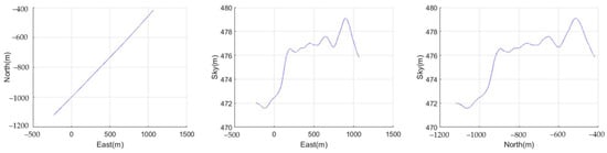 In order to demonstrate the theoretical analysis presented in this paper further, an experimental data processing experiment was carried out. The THz experiment was carried out by Beijing Institute of Radio Measurement in Shaanxi province, China. The radar operated in THz band. Figure 15 shows the flight trajectory of radar platform, which is not ideal linear trajectory. Because of terahertz band, the motion error cannot be neglected. The experimental scene is shown in Figure 16. There were three groups of trihedral corner reflectors and an aircraft in the scene. The aircraft flew from east to west. The size of experimental size is . Our experimental data processing was based on the Intel i7-4790 CPU, AMD Radeon R7 350 GPU hardware platform.