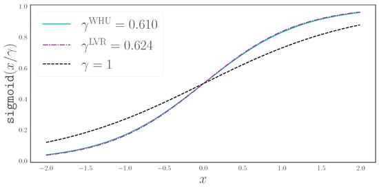 This function (the simplified formula was obtained with Mathematica 11) takes values in the range , and it becomes steeper as d increases. At the limit , it behaves like the integral of the Dirac function around point , . That is, the parameter d is a form of annealing “temperature”. Interestingly, although the iterative scheme was defined with d being an integer, for continuous values , remains bounded in the interval . That is: