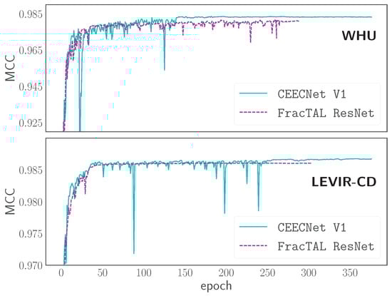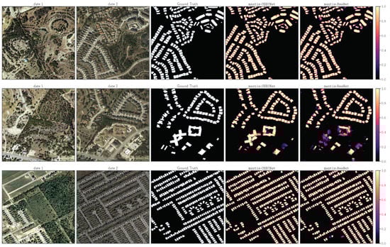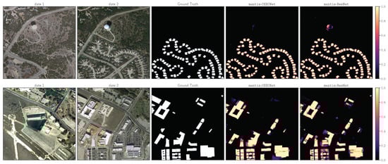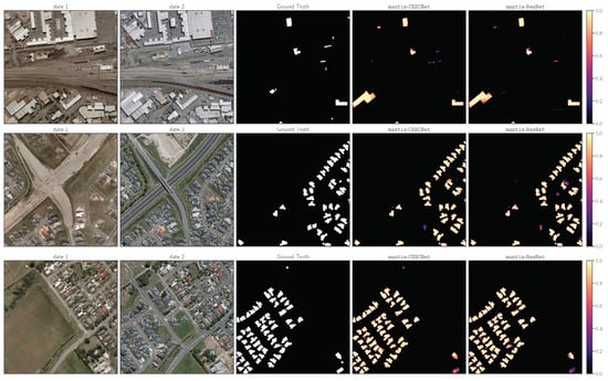 Networks integrating the above-mentioned contributions yielded state-of-the-art performance for the task of building change detection in two benchmark datasets for change detection: the WHU [] and LEVIRCD [] datasets.