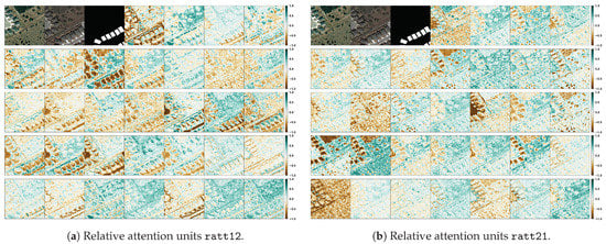 In addition, we found that this approach did not improve the performance for the case of change detection and classification. Indeed, one needs to question this for vision tasks: the initial definition of attention [] introduced a relative alignment vector, , that was necessary because, for the task of NMT, the syntax of phrases changes from one language to the other. That is, the relative emphasis with respect to location between two vectors is meaningful. When we compare two images (features) at the same depth of a network (created by two different inputs, as is the case for change detection), we anticipate that the channels (or spatial pixels) will be in correspondence. For example, the RGB (or hyperspectral) order of inputs, does not change. That is, in vision, the situation can be different than NLP because we do not have a relative location change as it happens with words in phrases.