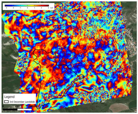 Differential interferogram generated with the images acquired on 2 December 2013 and 3 December 2013.