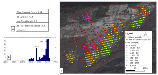 Considering the 44 available images, from a theoretical point of view, the maximum displacement observable by PSI techniques during the observational period is 119 cm (assuming λ/2 as the limit for phase ambiguity between two consecutive images [62,69].