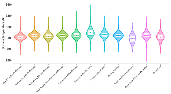 4.3. Impact of Land Use and Building Structure on Surface Temperature