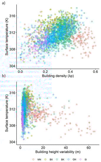 - Zheng, Z.; Zhou, W.; Yan, J.; Qian, Y.; Wang, J.; Li, W. The higher, the cooler? Effects of building height on land surface temperatures in residential areas of Beijing. Phys. Chem. Earth 2019, 110, 149–156. [Google Scholar] [CrossRef]