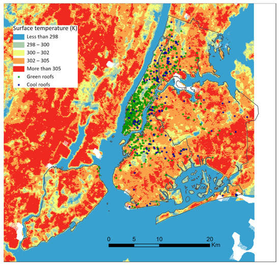 - New York City Cool Roofs (NYC CoolRoofs). Research Data Services (RDS), Columbia University Libraries and New York City Department of Buildings. Available online: https://maps.princeton.edu/catalog/sde-columbia-cul_nyc_dob_coolroofs_2012 (accessed on 9 August 2021).