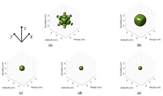 where , , and control the width of PSF along three coordinates axes, respectively. denotes the corresponding phase of each scattering center. According to −3 dB definition, the imaging resolution along these three dimensions for expected output images can be deduced as:
