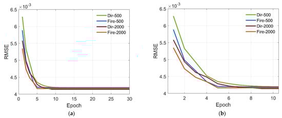 Evolution of the RMSE of different networks versus epoch. (a) Original image. (b) Local amplification.