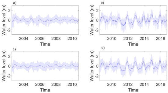3.3. Altimetry-Based Time Series of Water Levels