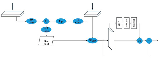 The Squeeze-and-Excitation (SE) block in squeeze-and-excitation networks (SENet) automatically obtains the importance of each channel by learning the dependencies between different channels, and then pays more attention to the features related to the current task according to the learning results, and suppresses the features that are not related to the current task [39]. Based on this characteristic of the attention mechanism, we considered combining the attention mechanism with the flow alignment module.