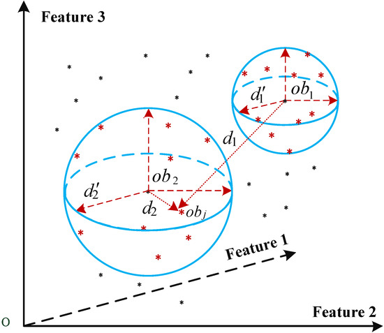 - Calculate the FSOI values of the initial samples in the TFSV established in step (1) based on Equation (8). Compared with unchanged samples, outlier samples (i.e., the changed samples in the initial sample sets) have higher FSOI values. Thus, outlier samples can be identified by setting an appropriate FSOI threshold. In general, a higher FSOI threshold may misjudge outlier samples as unchanged samples. On the contrary, a lower FSOI threshold may misjudge unchanged samples as outlier samples. In outlier sample detection, it is crucial that all outlier samples must be able to be identified. Accordingly, it is reasonable that each outlier sample can be identified by setting a relatively lower FSOI threshold. Then, eliminate outlier samples by comparing the size of FSOI values with the FSOI threshold, and update sample sets.