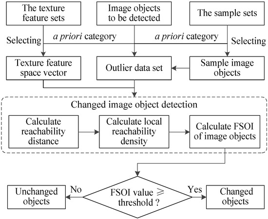 - First, according to the a priori category of an image object to be detected, the data set used for outlier detection with the samples and the object is established, and the is determined by the optimal texture features. Let S be the data set used for outlier detection. S can be written as:where denotes the set of objects used for outlier detection, and t is the number of samples with the same categories .