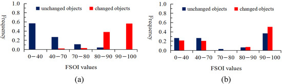 - Then, the FSOI value of the image object can be achieved based on Equation (8). Compared with unchanged image objects, changed image objects have higher FSOI values. Thus, changed image objects can be identified by setting an appropriate FSOI threshold.